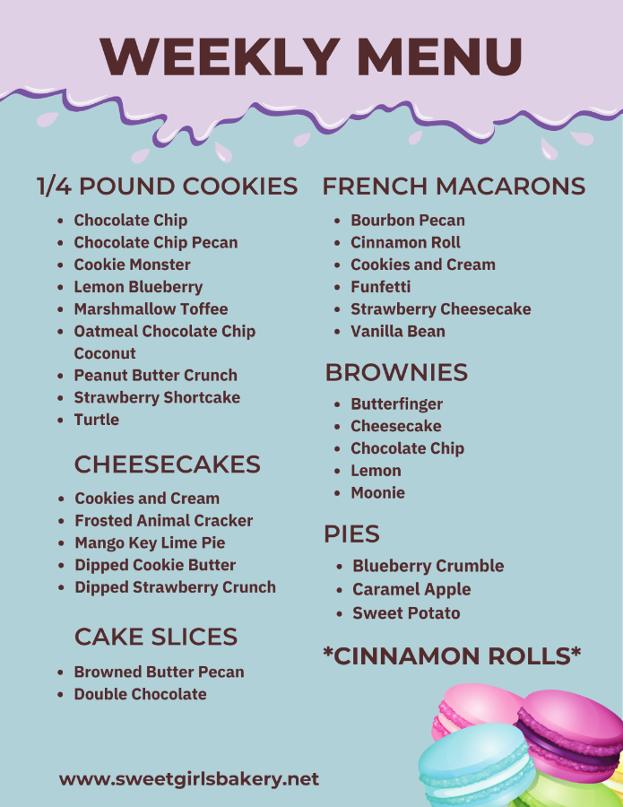 🚨 Today’s menu is LIVE at Sweet Girl’s Bakery 🍪🍰 Cookies, brownies, cheesecake, pies & cinnamon rolls — all fresh, all limited.